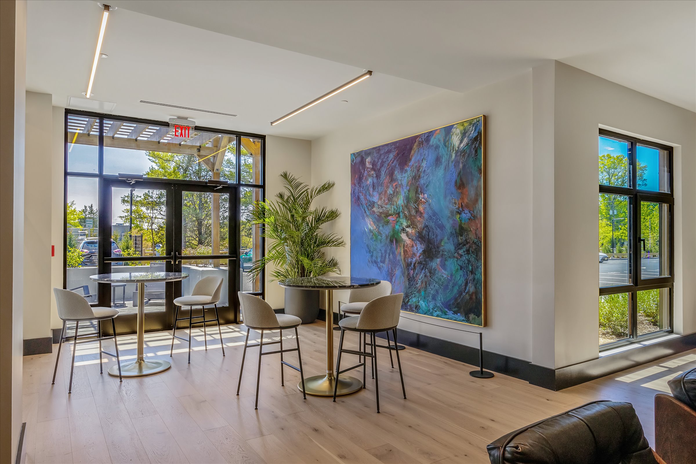Global Luxury Suites at Princeton offers a boutique living experience that feels both refined and personal and is just steps from the Princeton Shopping Center and minutes from downtown. Inside, sculptural furniture, curated art, and warm wood accents set the tone for a space that feels considered and lived in. Whether you’re relaxing on the rooftop or working from home at the library, every corner is designed to feel like home. You’ll find thoughtful touches throughout, from a tasting lounge and game room to a fitness club with private workout pods. The on-site AliceARTS Gallery brings the creativity of local artists into your everyday surroundings. Outside your door, a bus stop at Terhune and North Harrison connects you easily to the heart of Princeton. Stroll to Lucy’s Kitchen for artisanal bites or enjoy sushi at Elite Five just around the corner. For fresh groceries, McCaffrey’s Food Market is right next door, making errands feel effortless. With Grover Park and a new dog park just steps away, getting outdoors is always an easy option. Families will love the kids’ indoor playroom, while pet owners will appreciate the dog wash and walkable green space. EV charging stations, bike storage, and a car share program add even more ease to daily life. Unit Amenities: • Wraparound balconies spanning 18’ (in select units) • Tall windows & private balconies • Oak plank flooring & clean/warm white wall paint • Two tone slab panel kitchen cabinets • Stone countertops with tile backsplash • GE stainless steel appliances • Kitchen island with linear pendant • Ambient lighting • High contrast bathroom design with rain showers • In-home GE washer/dryer • Abundant closet space • Smart home technology • Some floorplans include dens (in select units) • Penthouse collection with designer finishes Building Amenities: • Curated artwork, sculptural furniture, & millwork • Lounge with tasting room & game area • Library & private work from home nooks • Seasonal rooftop terrace with fire pit & grilling • Fitness club with private work out pods • AliceARTS Gallery featuring renowned Princeton artist • Dog wash • Mail & package handling • Car share program • EV charging stations • Private storage & bike storage available • Monthly resident events & activities • Adjacent to new dog park & Grover Park • Adjacent to Princeton Shopping Center • Kids Indoor Playroom • Short walk to Princeton University, McCarter Theatre About the neighborhood: Located at 365 Terhune Road, Global Luxury Suites at Princeton sits in one of the town’s most distinguished neighborhoods, just minutes from downtown and a short walk to the Princeton Shopping Center. With a bus stop at Terhune and North Harrison, getting around is easy. Enjoy local favorites like Lucy’s Kitchen & Market and Elite Five Sushi, or pick up everyday essentials at nearby McCaffrey’s Food Market, all just steps from your door. Getting Around: • Princeton (NJ Transit) – 2.3 miles away (6-minute drive) • Princeton Junction (NJ Transit Northeast Corridor Line) – 4.4 miles away (11-minute drive)